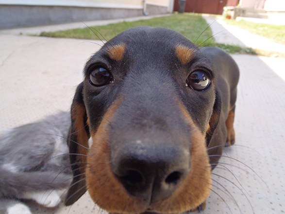 Imádjuk. Nagyon érdeklődő kiskutya.